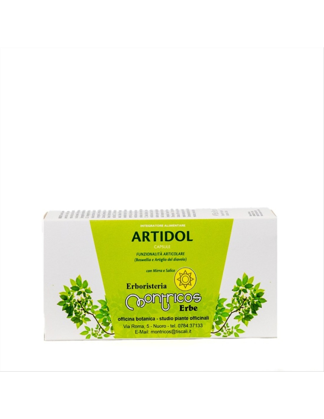Artidol è un integratore alimentare caratterizzato da una miscela straordinaria di piante officinali selezionate, vitamine e minerali specifici per un'azione mirata sulla funzionalità articolare. Gli estratti di Artiglio del Diavolo, Boswellia, Curcuma, Salice Bianco, Uncaria, Ribes Nero e Spirea offrono un supporto mirato alla salute delle articolazioni. In particolare, la Boswellia e il Salice Bianco contrastano stati di tensione localizzati, mentre Curcuma e Pepe Nero svolgono un'azione antiossidante. Il Manganese e la Vitamina C derivata dalla Rosa Canina favoriscono la normale formazione del tessuto connettivo, specialmente delle cartilagini.