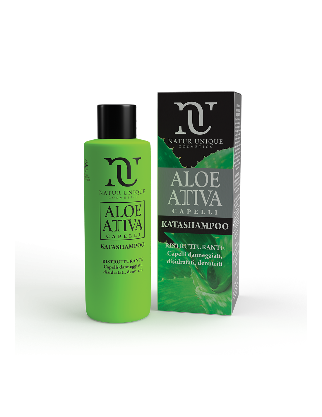 Lo shampoo Katashampoo della linea Aloe Attiva Capelli è una formula ad altissima performance con proprietà ristrutturanti, nutritive e idratanti. Ideale per capelli aridi e danneggiati da permanenti, tinte, decolorazioni, extension, phon e sole, nutre e rigenera la fibra capillare rendendo la chioma morbida, lucente e facilmente pettinabile, senza appesantirla.