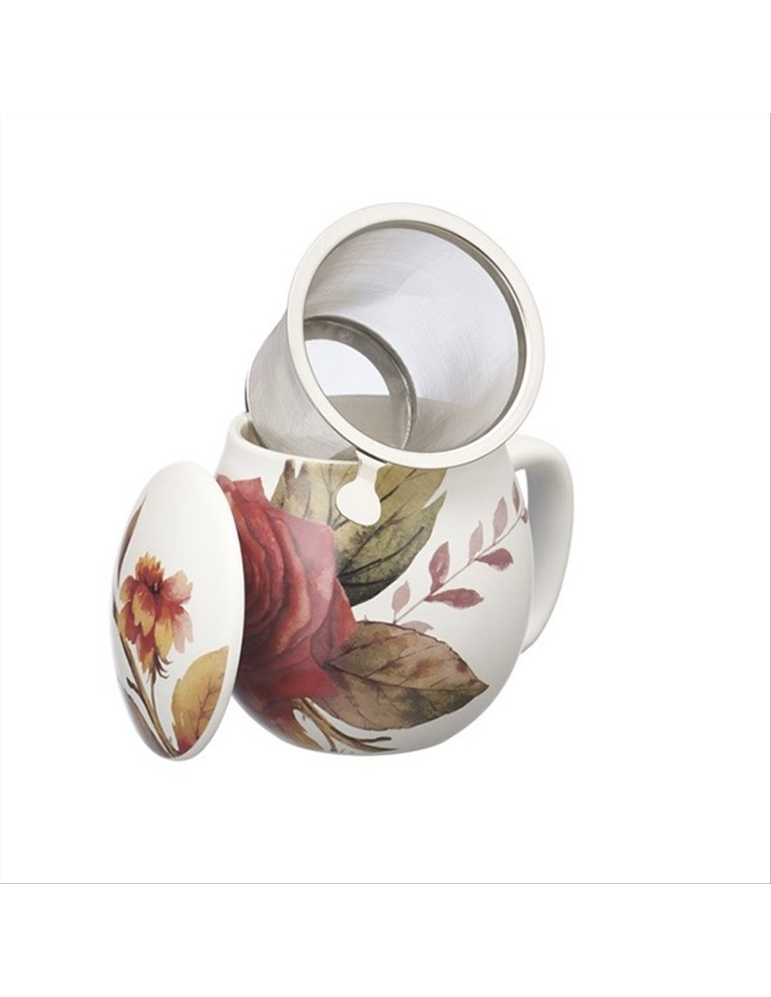 Aggiungi un tocco di praticità e stile alla tua pausa tè con la nostra tisaniera in porcellana con filtro in acciaio inox.